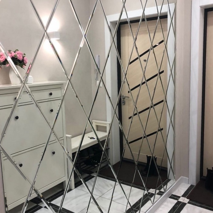 Зеркальное панно на стене прихожей